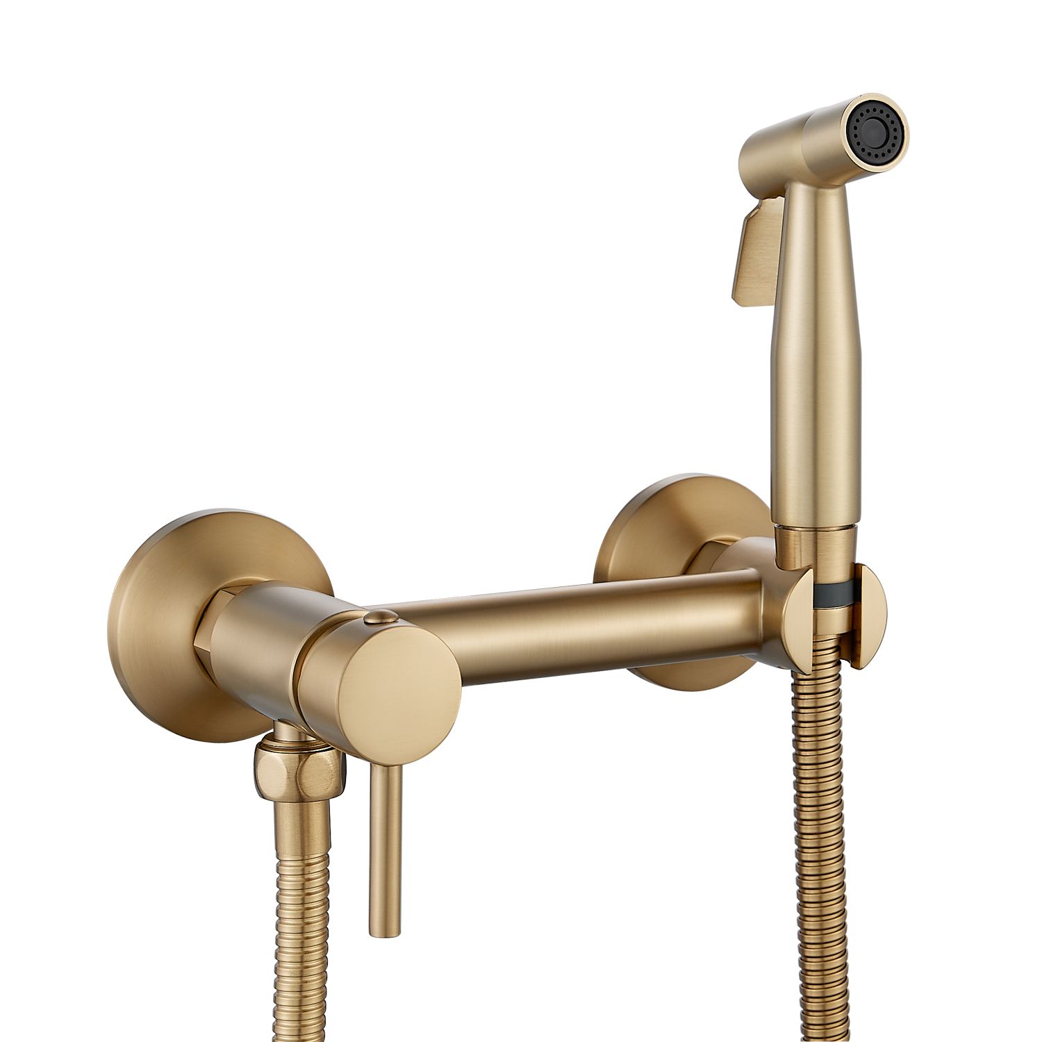 Гигиенический душ со смесителем Shevanik S107G в современном цвете "золотой сатин" изготовлен из прочной латуни, что гарантирует его долговечность и надежность. Устройство предназначено для настенного монтажа на 2 отверстия с возможностью регулировки межосевого расстояния в 150 мм благодаря входящим в комплект эксцентрикам. Лейка гигиенического душа выполнена из нержавеющей стали, что обеспечивает её устойчивость к коррозии и долгий срок службы. Душевой шланг имеет двойную металлическую оплетку и длину 120 см, что обеспечивает его прочность и защиту от перекручивания. Продукт поставляется с гарантией на 5 лет, что подтверждает его высокое качество и надежность.