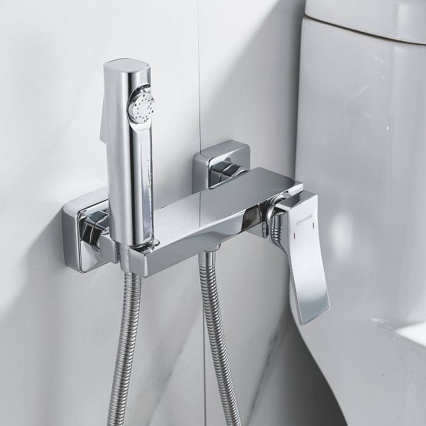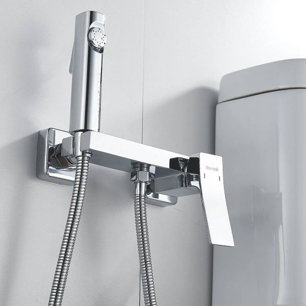 Гигиенический душ Shevanik со смесителем угловатой формы изготовлен из высококачественной латуни, обеспечивая прочность и долговечность. Уникальная конструкция корпуса смесителя выполнена в виде полочки для дополнительного удобства и хранения личных гигиенических принадлежностей.
