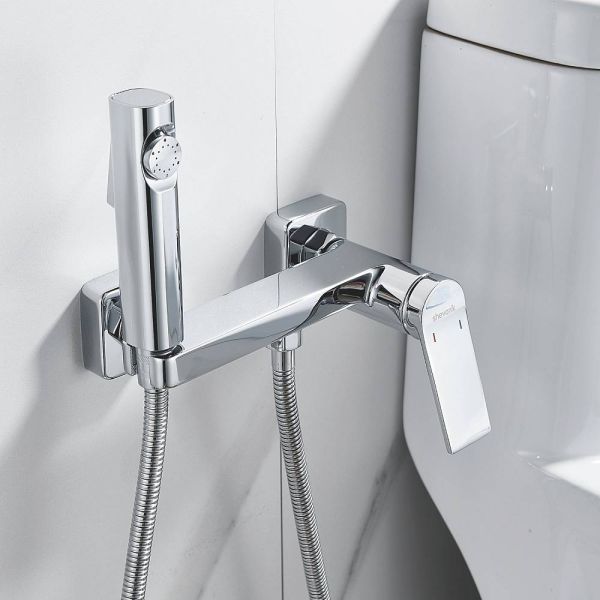 Гигиенический душ Shevanik со смесителем угловатой формы изготовлен из высококачественной латуни, обеспечивая прочность и долговечность. Уникальная конструкция корпуса смесителя выполнена в виде полочки для дополнительного удобства и хранения личных гигиенических принадлежностей.