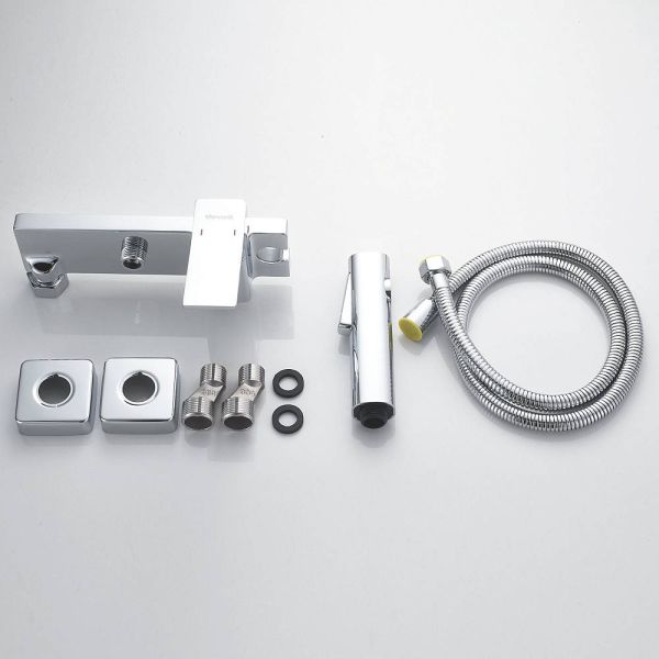 Гигиенический душ Shevanik со смесителем угловатой формы изготовлен из высококачественной латуни, обеспечивая прочность и долговечность. Уникальная конструкция корпуса смесителя выполнена в виде полочки для дополнительного удобства и хранения личных гигиенических принадлежностей.