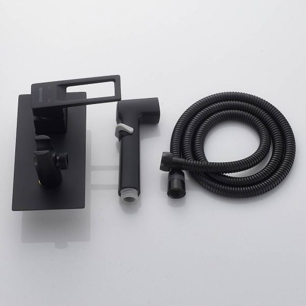 Гигиенический душ со смесителем Shevanik S6805H в черном матовом цвете предназначен для скрытого монтажа, что позволяет сохранить эстетичный вид ванной комнаты. Изготовлен из прочной латуни, что гарантирует долговечность и устойчивость к коррозии. Управление осуществляется с помощью керамического картриджа и рычажного механизма, обеспечивая плавную и точную регулировку воды. Лейка гигиенического душа выполнена из ABS пластика, а её держатель удобно размещен на корпусе смесителя, что способствует комфортному использованию. В комплект входит шланг в двойной металлической оплетке длиной 120 см, который обеспечивает надежность и защиту от повреждений. Гарантия на данный продукт составляет 5 лет, что подтверждает его высокое качество и надежность.