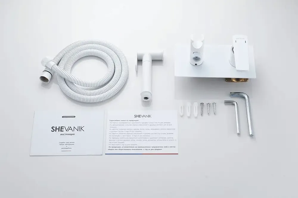 Гигиенический душ со смесителем Shevanik S8005F, белый.Материал: латунь.Гарантия: 5 лет.Длина шланга: 100 см.