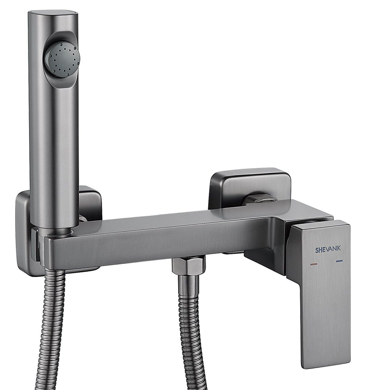 Гигиенический душ со смесителем Shevanik S9605T-1, оружейная сталь.Материал: латунь.Гарантия: 5 лет.Длина шланга: 120 см.