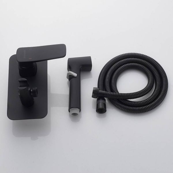 Гигиенический душ со смесителем Shevanik S9905H в черном матовом цвете предназначен для скрытого монтажа, благодаря чему сохраняется эстетичный вид ванной комнаты. Изготовлен из надёжной латуни, что обеспечивает долговечность и устойчивость к коррозии. Управление осуществляется с помощью керамического картриджа и рычажного механизма, гарантируя плавную и точную регулировку воды.