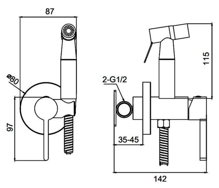 Гигиенический душ со смесителем представляет собой удобный альтернативный вариант стандартному биде. Шланг обладает достаточной длиной 120 см что вполне достаточно для комфортного использования. Лейка для гигиенического душа хорошо держится в руке и обеспечивает комфорт всех проводимых манипуляций с использованием биде для унитаза. В комплекте гигиенический душ, держатель лейки и душевой шланг . Душ гигиенический со смесителем настраивается как смеситель. Имеется нажимное переключение на душ и керамический картридж диаметром 25 мм. Присоединительный размер - G 1/2, предназначен для одного потребителя. Защита от обратного потока и ограничение температуры отсутствуют.