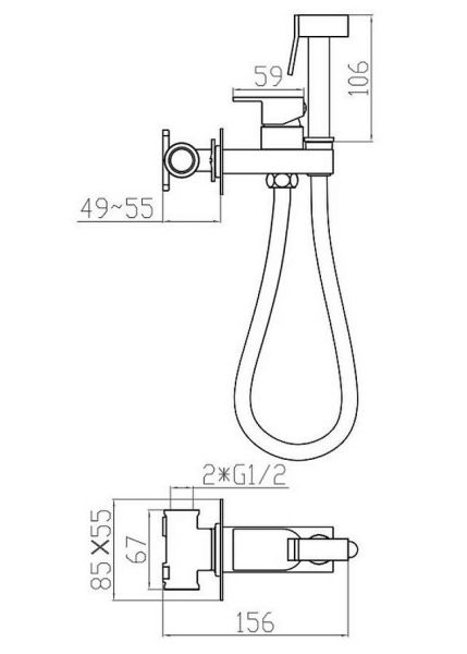 95.52 Встраиваемый гигиенический душ, выполнен из латуни в хроме, шланг 120 см и лейка в комплекте.