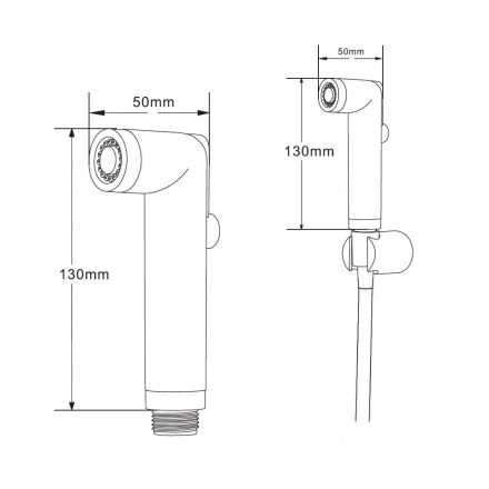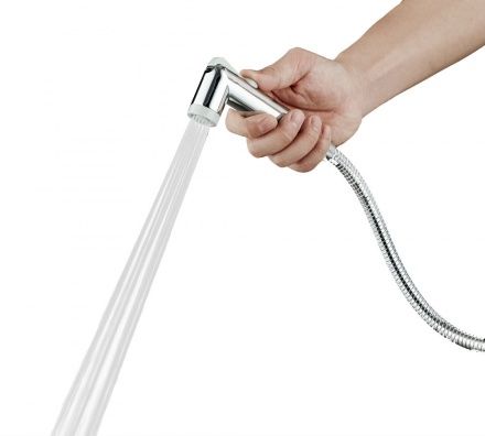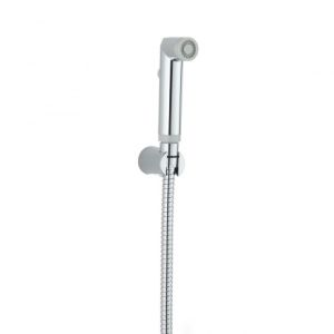 Гигиенический набор в цвете глянцевый хром: гиг душ d25 мм (1 режим) на пластиковом шланге 120 см с защитой от перекручивания. В комплекте настенный держатель.