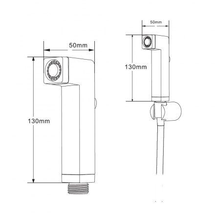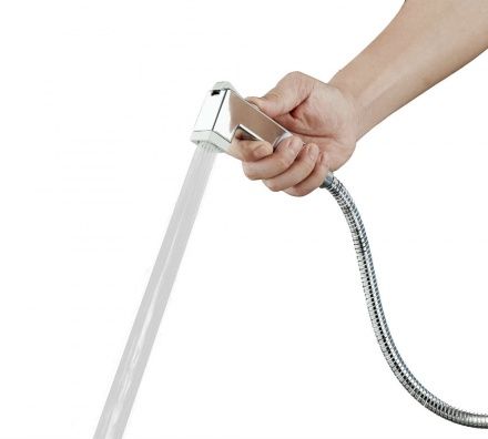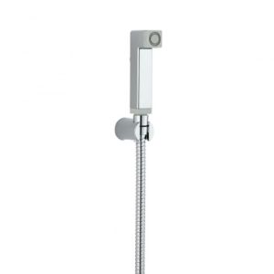 Гигиенический набор в цвете глянцевый хром: гиг душ 25х25 мм (1 режим) на пластиковом шланге 120 см с защитой от перекручивания. В комплекте настенный держатель.
