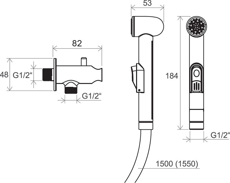 BM 040.00 Настенный вентиль с ручным гигиеническим душем. Содержит вентиль для включения/выключения воды, душевой держатель с выходом для шланга и гигиенический душ с кнопкой. Предназначен для холодной воды или смешанной воды из душевого смесителя скрытого монтажа.