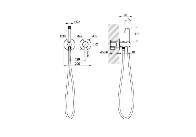 Длина шланга для гигиенического душа (см): 120