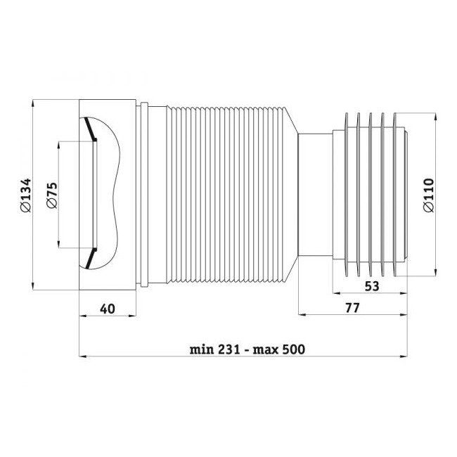 Гофра АНИ Пласт К828Удлинитель гибкий для унитаза выход в канализацию 110мм длина 231-500мм