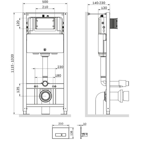 Инсталляция AM.PM Pro I012704.7051 для подвесного унитаза с клавишей смыва ХромВертикальные ребра жесткости в конструкции рамы – дополнительная опора в месте давления керамики на стену. Благодаря им инсталляция более универсальная и подходит для унитазов любых размеров, включая унитазы с небольшой контактной поверхностью. Нет необходимости докупать дополнительные аксессуары для монтажа таких унитазов. Благодаря цельному стальному профилю 40х40 мм толщиной 2 мм инсталляция выдерживает нагрузку до 400 кг. Цельный бесшовный бачок из полиэтилена с защитой от конденсации. Комфортное использование благодаря заливному клапану с низким уровнем шума - менее 20 Дб.