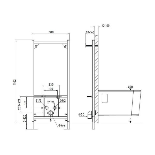 Размер от монтажной стены до чернового обрамления: 90-168мм
