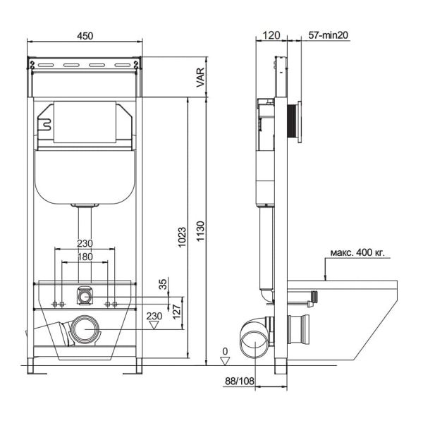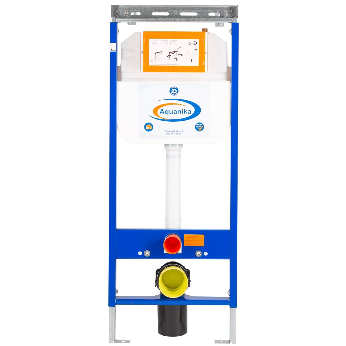 Комплектация «готовый комплект»- все необходимые крепления, патрубки, звукоизолирующая прокладка в комплекте. Вертикальные ребра жесткости в конструкции рамы – дополнительная опора в месте давления керамики на стену. Благодаря им инсталляция становится универсальной и подходит для унитазов любых размеров, включая унитазы с небольшой контактной поверхностью. Нет необходимости докупать дополнительные аксессуары для монтажа таких унитазов. Конструкция из цельного стального профиля 50*25 мм толщиной 2,0 мм позволяет выдерживать требуемую стандартами нагрузку до 400 кг. Цельно-выдувной бесшовный бачок из полиэтилена низкого давления (ПНД) с защитой от конденсата. Комфортное использование благодаря заливному клапану с низким уровнем шума – менее 20 Дб. Металлические детали конструкции инсталляции Aquanika покрыты порошковой эмалью для предотвращения появления коррозии. В сочетании приведённых характеристик мы предоставляем гарантию на данный продукт 10лет.