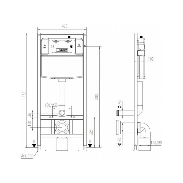 Ширина инсталляции, см:47