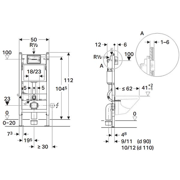 Инсталляция для унитаза Geberit Duofix Delta 458.134.21.2 с клавишей Delta 20, хром