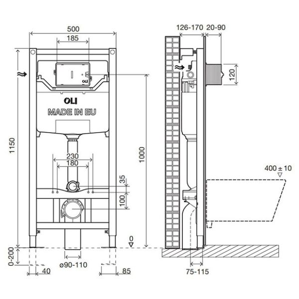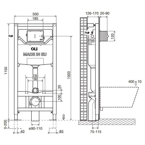 Система инсталляции для подвесного унитаза OLI 120 (0500*1150*0126), механическая, метал. крепления. Характеристики: совместима со всеми видами подвесных унитазов; подходит для легких стен; рама испытана нагрузкой 400 кг; фановый отвод для слива, регулируемый по глубине; легкость и быстрота установки (система Fast Fit); доступна опция с металлическими креплениями; регулируется по высоте от 0 до 200 мм.