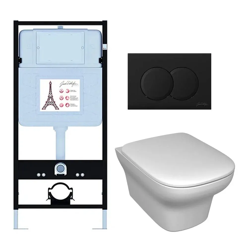 Инсталляция Jacob Delafon E21747RU-BL, с безободковым унитазом Vox, сиденье с микролифтом, клавиша черная матовая