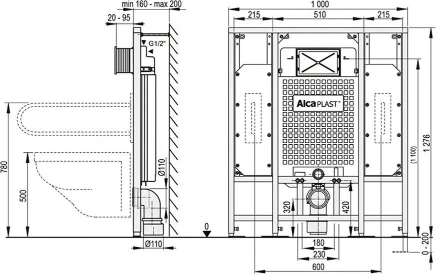 Система инсталляции для унитазов AlcaPlast Sadromodul A101/1300H разработана для людей с ограниченной физической активностью. Рамный модуль устанавливается в гипсокартонные конструкции, в том числе к самостоятельной гипсокартонной перегородке или перед несущей стеной. Максимальная нагрузка – 400 кг. С помощью выдвижных ножек рамы можно установить высоту унитаза в диапазоне до 200 мм. Установленный модуль закрывается гипсокартонным листом и не требует дополнительных крепежных элементов.Для установки унитаза с межосевым монтажным расстоянием 18 или 23 см