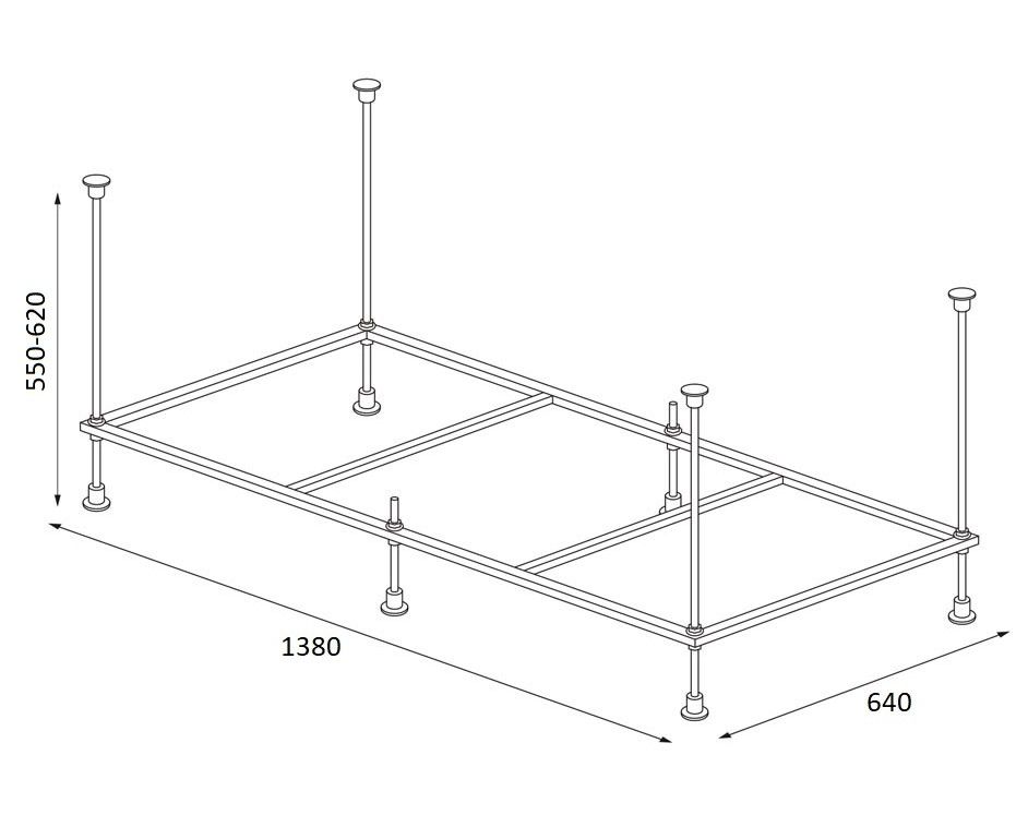 Сварная рама для прямоугольной ванны - надежное и устойчивое решение для установки ванны.Благодаря дополнительной обработке металлической конструкции практически исключается коррозионное воздействие, а регулируемые ножки позволяют установить ванну даже на неровной поверхности.