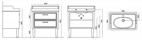 Kerama Marazzi Тумба напольная POMPEI для раковины 80 см, 2 ящика, белая PO.M.80.2/WHT