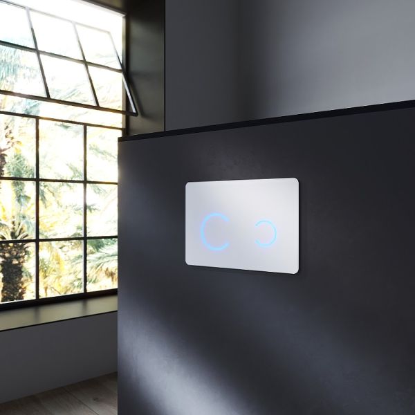 Клавиша смыва Am.Pm Touchless Pro I0450B01 Белая глянцеваяКлавиша смыва AM.PM Touchless Pro I0450B01.Сенсорная клавиша обеспечивает гигиеничный бесконтактный смыв - достаточно поднести руку на расстояние 2-3 см от сенсора для активации смыва.Стильный дизайн – внешняя панель выполнена из чёрного стекла, при активации смыва включается подсветка.Простота монтажа – не требуется подводить электричество, клавиша работает от батареек. Экономичность - качественные батарейки прослужат до одного года в условиях домашнего использования.Комфорт – если батарейки разряжены, смыв можно активировать вручную, сняв внешнюю стеклянную панель.Характеристики:Цвет: белый глянцевый.