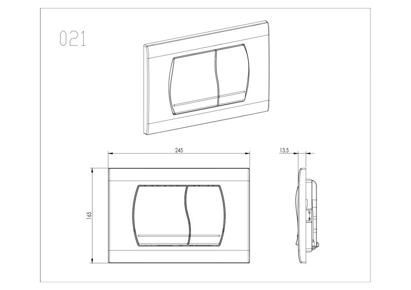 Габариты (Д Ш Г), см: 24,5х16,5х1,35Для инсталляций и бачков: Aquatek, Geberit Duofix Sigma (UP320, UP720)Режим слива воды: две кнопки (режим эконом)Для задействования смыва из смывных бачков скрытого монтажаНазначение: для подвесного унитаза, для напольного приставного унитазаУстановка: фронтальнаяУправление: механикаМатериал: ABS-пластикОсобенности: шумопоглощающие толкатели привода смыва, быстрая установка без применения инструментовГарантия: 10 летПроисхождение бренда: Россия