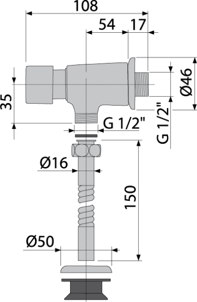 Кнопочный сливной вентиль для писсуара AlcaPlast ATS001