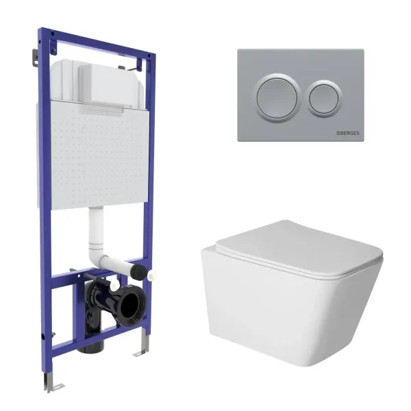 Комплект Berges 043402: инсталляция NOVUM кнопка O2 хром матовый унитаз Sigma Rimless сидение дюропласт быстросъём купить