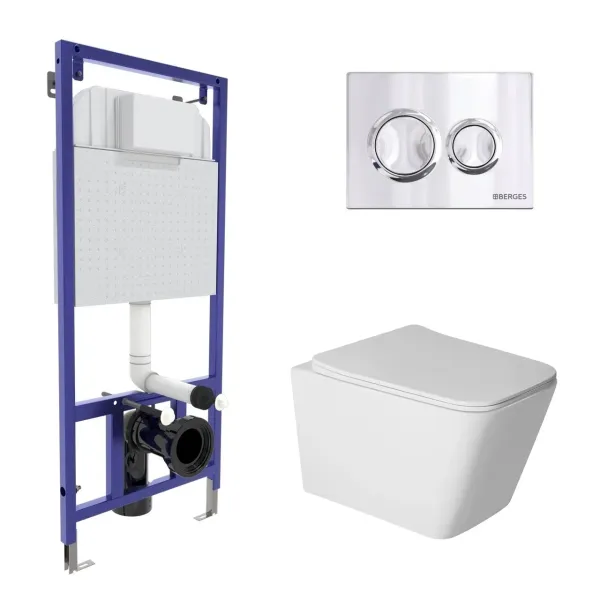 Комплект Berges 043403: инсталляция NOVUM кнопка O3 хром глянцевый унитаз Sigma Rimless сидение дюропласт быстросъём купить