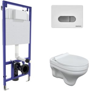Комплект Berges 4в1 042441: инсталляция NOVUM кнопка D7 белая/хром глянец унитаз Albit S сиденье Top Slim SO