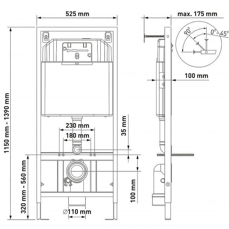 Инсталляция со смывным бачком Novum и клавишей смыва D7.