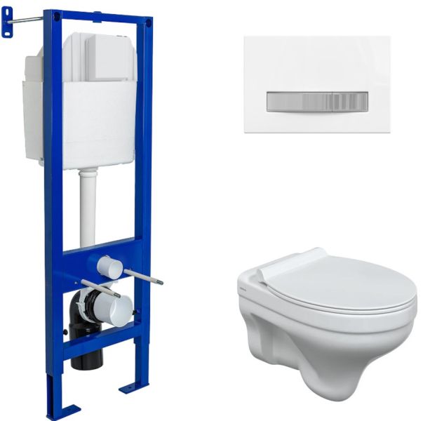 Комплект унитаза с инсталляцией Berges Wasserhaus Atom 042444 с сиденьем Микролифт и Белой Хром клавишей смыва.Характеристики:Унитаз Albit S Rimless:Цвет: белый.