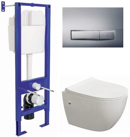 Комплект Berges 4в1 042447: инсталляция ATOM Line 410 кнопка хром глянец унитаз Okus сиденье Okus Slim SO