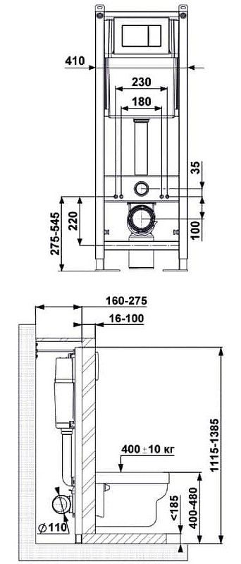 Полный Комплект ATOM Line для монтажа подвесного унитаза:инсталляция, кнопка хром глянецcтальная рама с антикоррозийным покрытиемРасчётная нагрузка до 400 кг. Ножки c регулировкой высоты. Межосевое расстояние под крепежные шпильки унитаза 18 и 23 см. Бачок с функцией шумоподавления. Двухрежимная кнопка смываЭконом слив 3л, полный слив настраивается от 5,5 до 8,5лМонтажный кнопочный узел, полный комплект патрубков, лекала для монтажа отверстийунитаз OKUS: душевой смыв, сидение дюропласт Okus Slim SO: микролифт, быстросъемное.Все крепежи для установки в комплекте. Гарантия 10 лет.