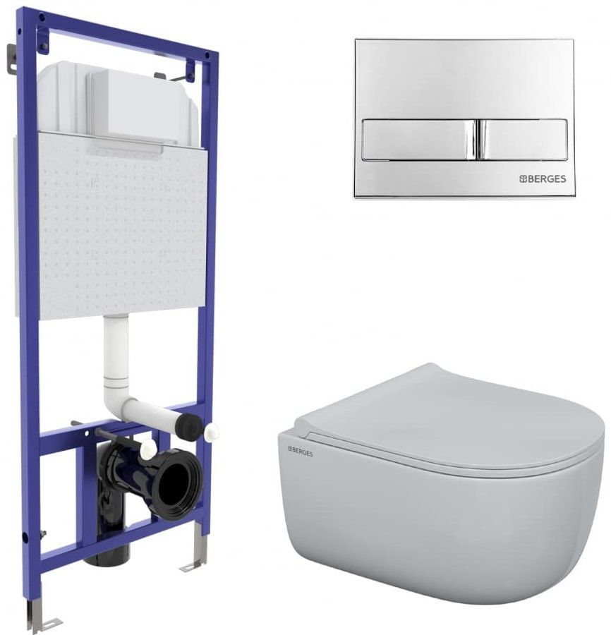 Комплект Berges 4в1 047213: инсталляция NOVUM525 кнопка L3 хром глянец унитаз EGO Rimless сиденье Toma Slim SO