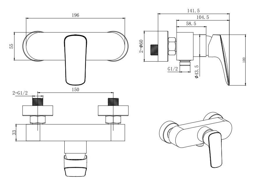• Душевой гарнитур: душевая стойка с мыльницей, лейка, шланг