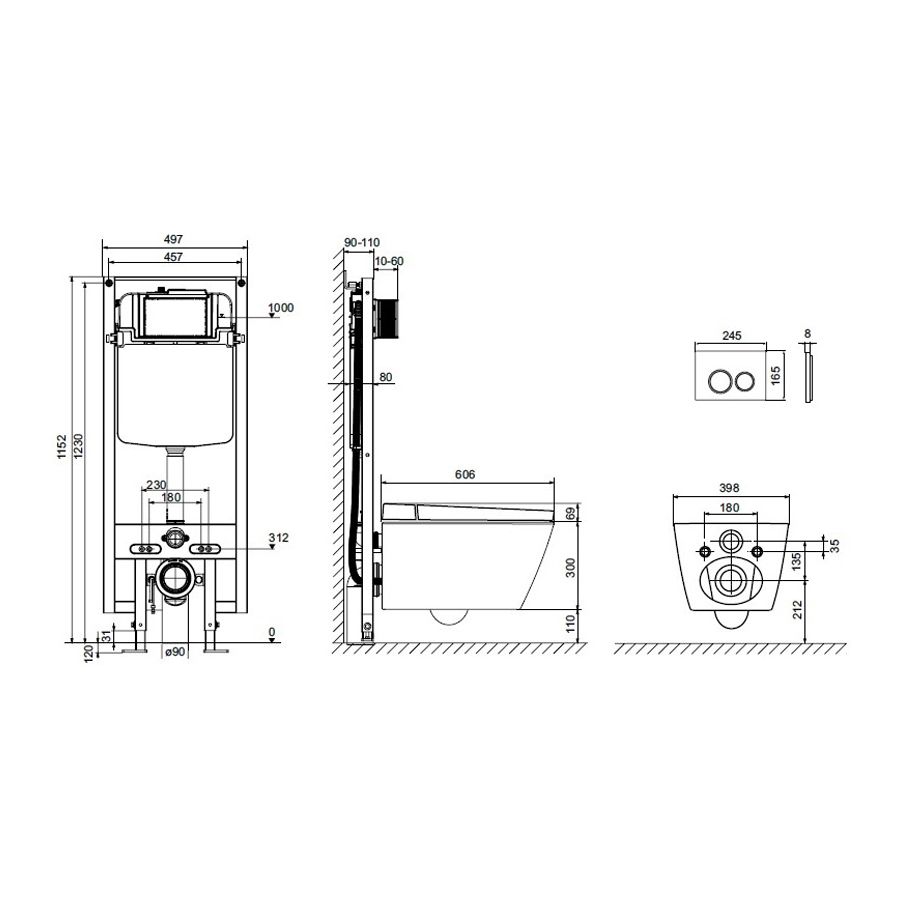 • Объем бачка 6 л: настраиваемый объем малого смыва – от 3 до 5 л, большого – от 4 до 6 л