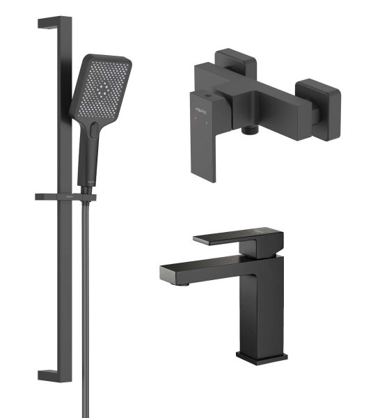 • Душевой гарнитур: душевая стойка с мыльницей, лейка, шланг