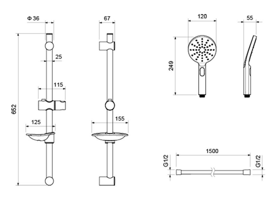 • Душевой гарнитур: душевая стойка с мыльницей, лейка, шланг