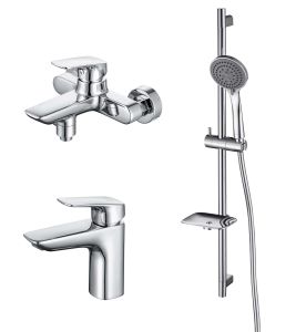 В комплекте: душевая штанга; держатель душевой лейки; душевая лейка ; душевой шланг из ПВХ ; мыльница; монтажный комплект