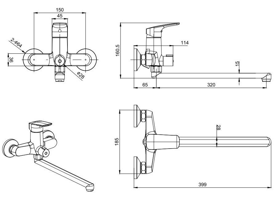 • Душевой гарнитур: стойка для душа с мыльницей, лейка, шланг