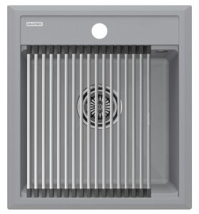Комплект мойка STEPIA 45 + ролл-мат STEP, PM114651-GRS+R375-BSСтильный и многофункциональный комплект мойки из композитного материала на основе гранита и ролл-мата из высококачественной нержавеющей стали для создания комфортной рабочей зоны на вашей кухне.Мойка STEPIA 45 изготовлена из IT-GRANIT – композитного материала на основе гранита, благодаря чему мойка не потеряет свой первоначальный цвет за многие годы использования даже при длительном воздействии солнечных лучей. Материал мойки устойчив к сколам, царапинам и деформациям. На горизонтальных гранях чаши мойки предусмотрены специальные выступы-ступеньки, которые позволяют использовать такие аксессуары, как ролл-маты, доски, коландеры и пр. для создания дополнительной рабочей поверхности на кухне. Дно чаши мойки имеет 4 грани, направленных к сливу под индивидуальным градусом для максимально быстрого ухода воды.