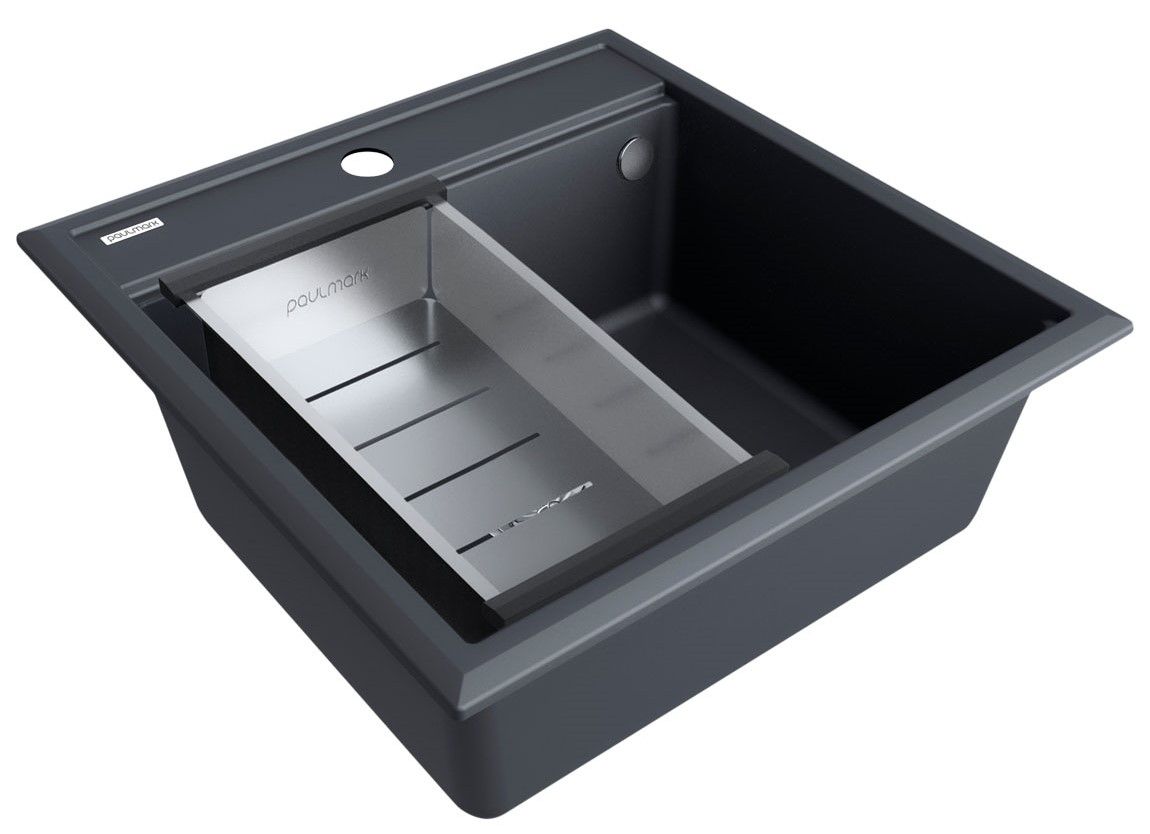 Комплект Paulmark: мойка Stepia 50 и коландер Advance PM115051-AN+A375-BS антрацит/брашированная нержавеющая сталь купить