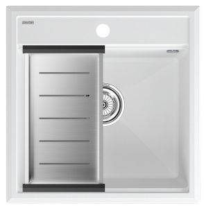 Комплект мойка STEPIA 50 + коландер ADVANCE, PM115051-WH+A375-BSСтильный и многофункциональный комплект мойки из композитного материала на основе гранита и коландера из высококачественной нержавеющей стали для создания комфортной рабочей зоны на вашей кухне.Мойка STEPIA 50 изготовлена из IT-GRANIT – композитного материала на основе гранита, благодаря чему мойка не потеряет свой первоначальный цвет за многие годы использования даже при длительном воздействии солнечных лучей.