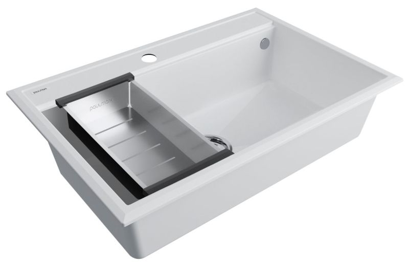 Комплект Paulmark: мойка Stepia 80 и коландер Advance PM117551-WH+A375-BS белый/брашированная нержавеющая сталь купить