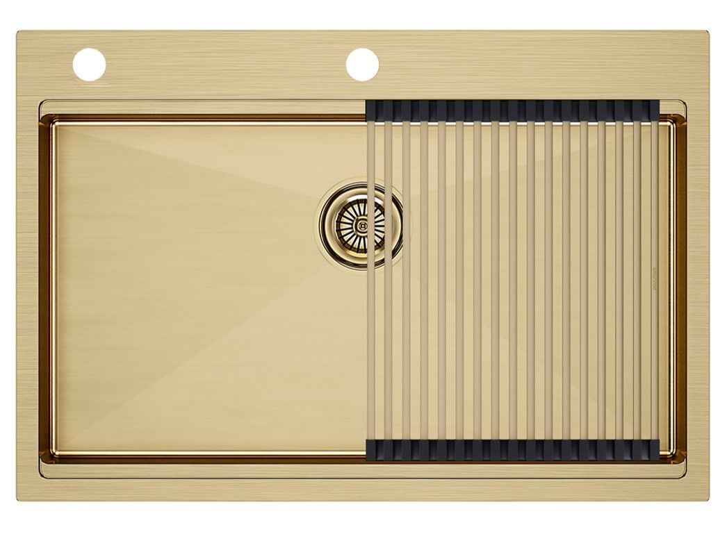 Комплект Paulmark: мойка Vast-Pro 80 и ролл-мат Pro PM707551-BG+R405-BG брашированное золото