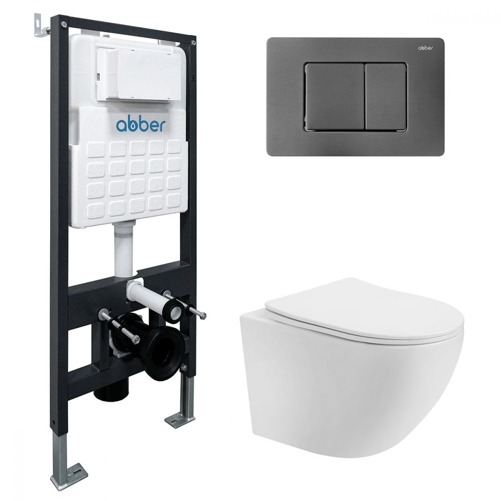 Комплект подвесной унитаз ABBER Bequem AC1100T белый с инсталляцией AC0105 и кнопкой AC0120NG никель купить