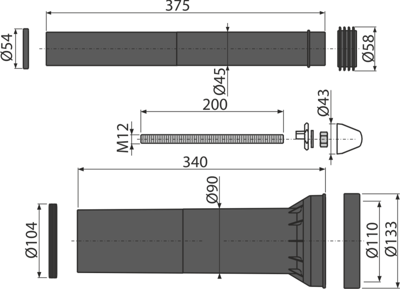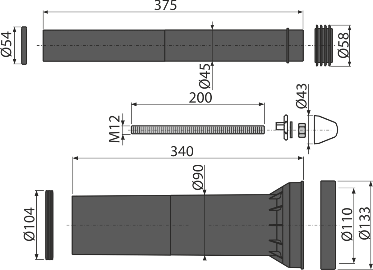 - Для подключения воды и канализации к подвесному унитазу – удлиненный набор