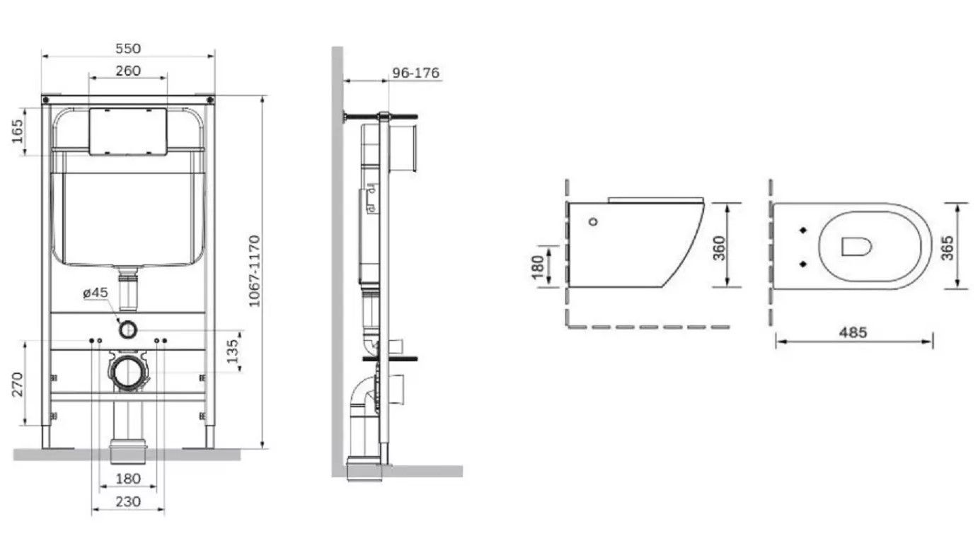 Комплект SantiLine SL-5009 + SL-01 безободковый белый унитаз с сиденьем микролифт и инсталляция с клавишей смыва хром купить